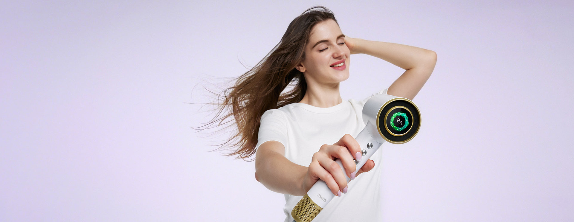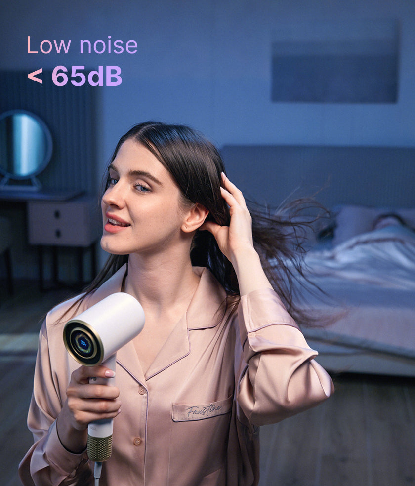 Mera's unique patented air channel design technology can increase wind power while avoiding hair entanglement.110K RPM High Speed Motor,Max Air Speed152mph,Dries hair up to 50% faster than atraditional hair dryer*( In lab testing vs. 1800W non-ionic hair dryer).