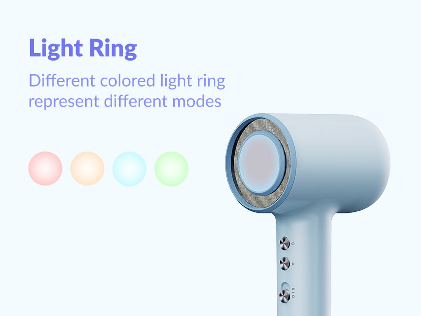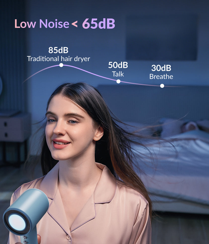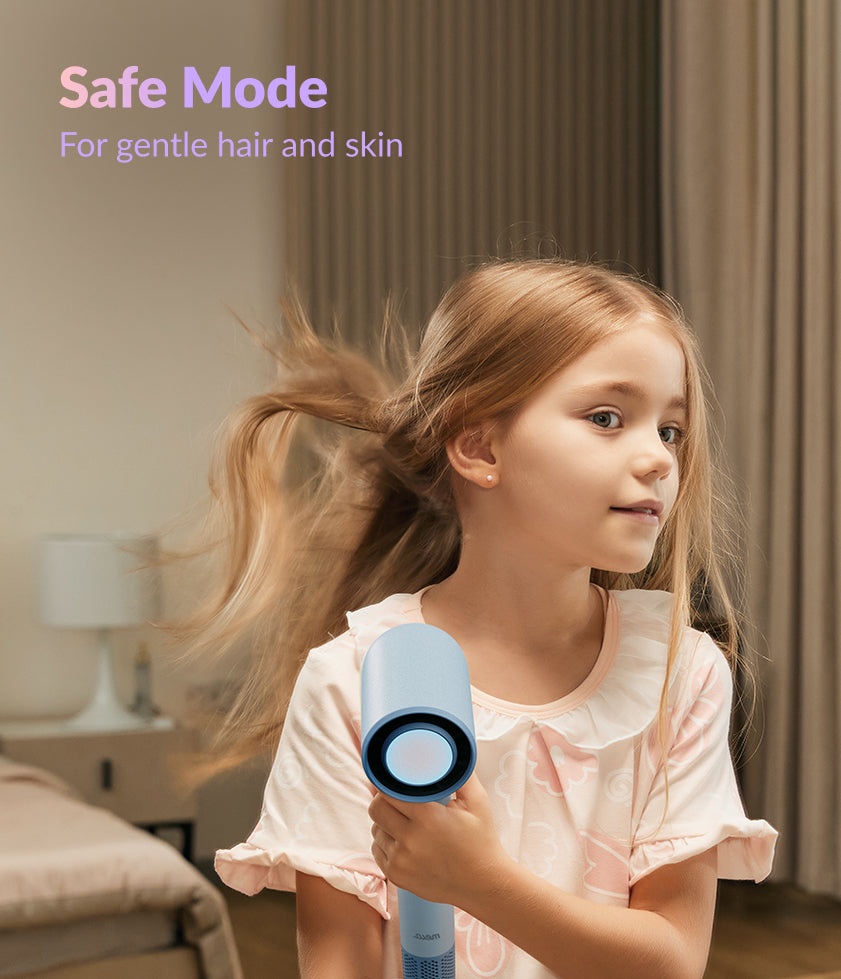 Engineered with everyday comfort in mind — MERA features a smart light ring for mode control, a Safe Mode for kids and sensitive scalps, ultra-quiet performance under 65dB, and a self-cleaning airflow system that keeps your dryer running like new.