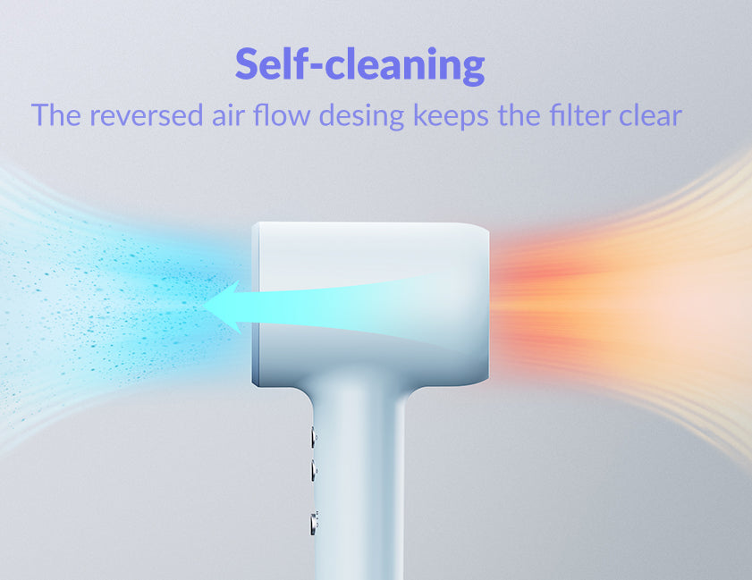 - Self - Clean mode — The reversed air flow design keeps the filter clear, ensuring the long-term efficient operation of the hair dryer.